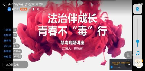 6月24日,在第33个“世界禁毒日”即将到来之际,学院举办了“法治伴成长,青春不‘毒’行”的主题讲座。主讲老师程沅君以案释法,将毒品的理论知识和真实案例结合起来,讲解禁毒相关法律法规、毒品的危害以及毒品防范等相关知识,并强调毒品的巨大危害,提醒同学们要提高警惕,从我做起,用实际行动积极投身于禁毒行列中。