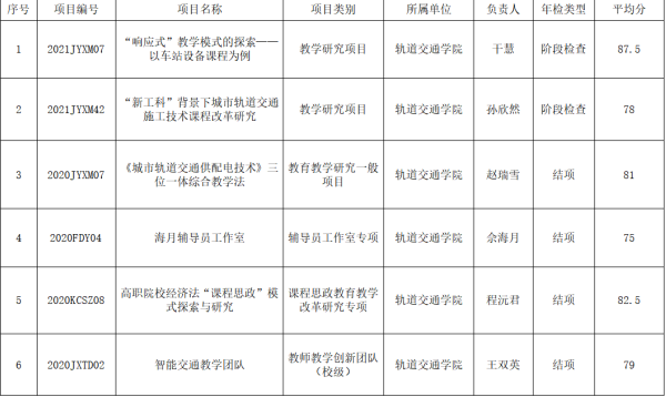 根据《关于开展我校2022年度校级质量工程项目检查验收工作的通知》的要求,我院六个项目经个人自查、二级学院初审及专家组评审,其中四项已达到结题要求,予以结题通过,两项符合中期考核要求,考核通过。评审结束后,我院已将修改意见给予项目负责人,现结果公示如下。