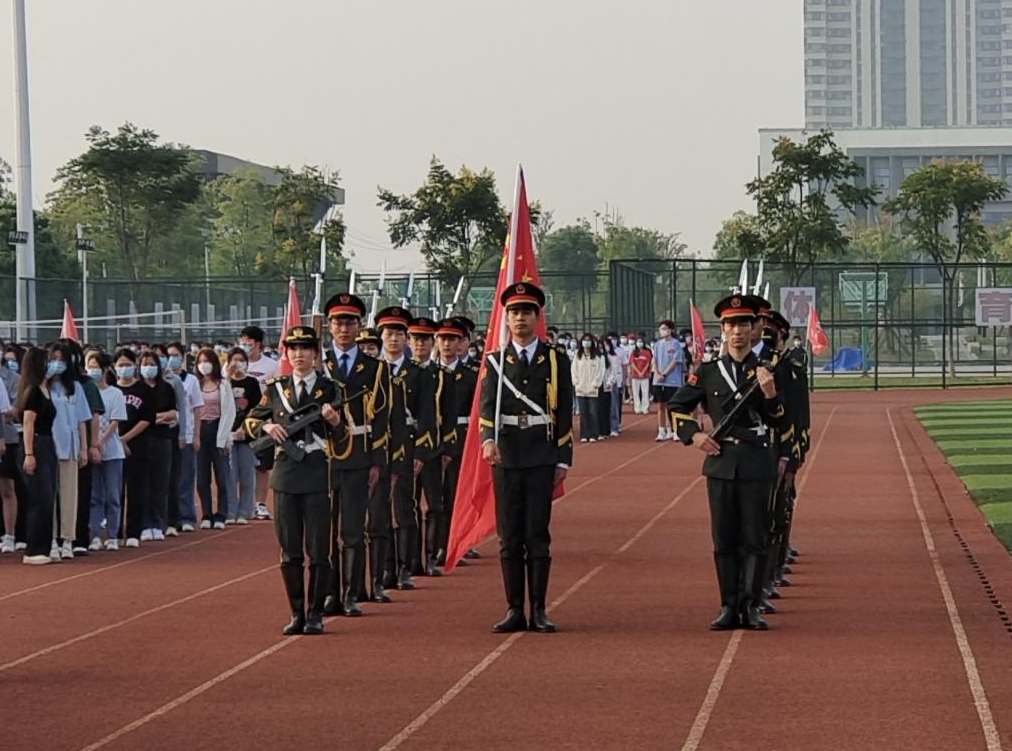 迎着朝阳,披着晨光,仪式准时开始。国旗护卫队队员身着礼宾服,手执礼宾枪,迈着整齐划一、铿锵有力的步伐,护卫着鲜艳的五星红旗健步入场。全体师生面向国旗肃立致礼,以饱满的热情、积极向上的精神面貌深情注视着高高飘扬的五星红旗,表达着对伟大祖国的深情热爱、对学校的美好期许。