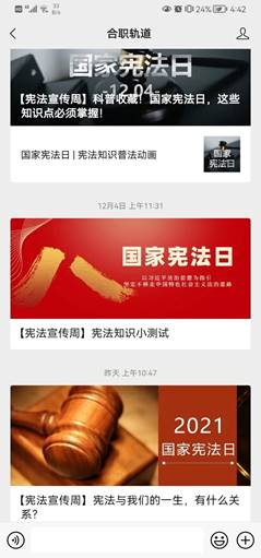 学院通过微信公众号推文进行法律科普和宣传,让学生们通过推文和动画了解国家宪法日以及宪法和我们日常生活的关系。提升了同学们法治素养,牢筑了法治意识,让宪法精神融入我们大学生的日常行动之中。