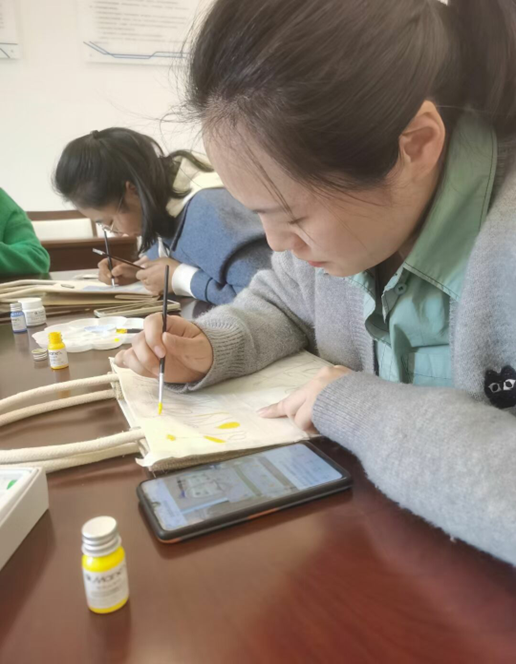 3月8日下午,学院全体女职工参与制作手绘环保帆布包,各位老师搜寻资料,认真选材,精心设计、书写、绘画,制成了一幅幅画面精美、内容丰富、布局新颖的作品。