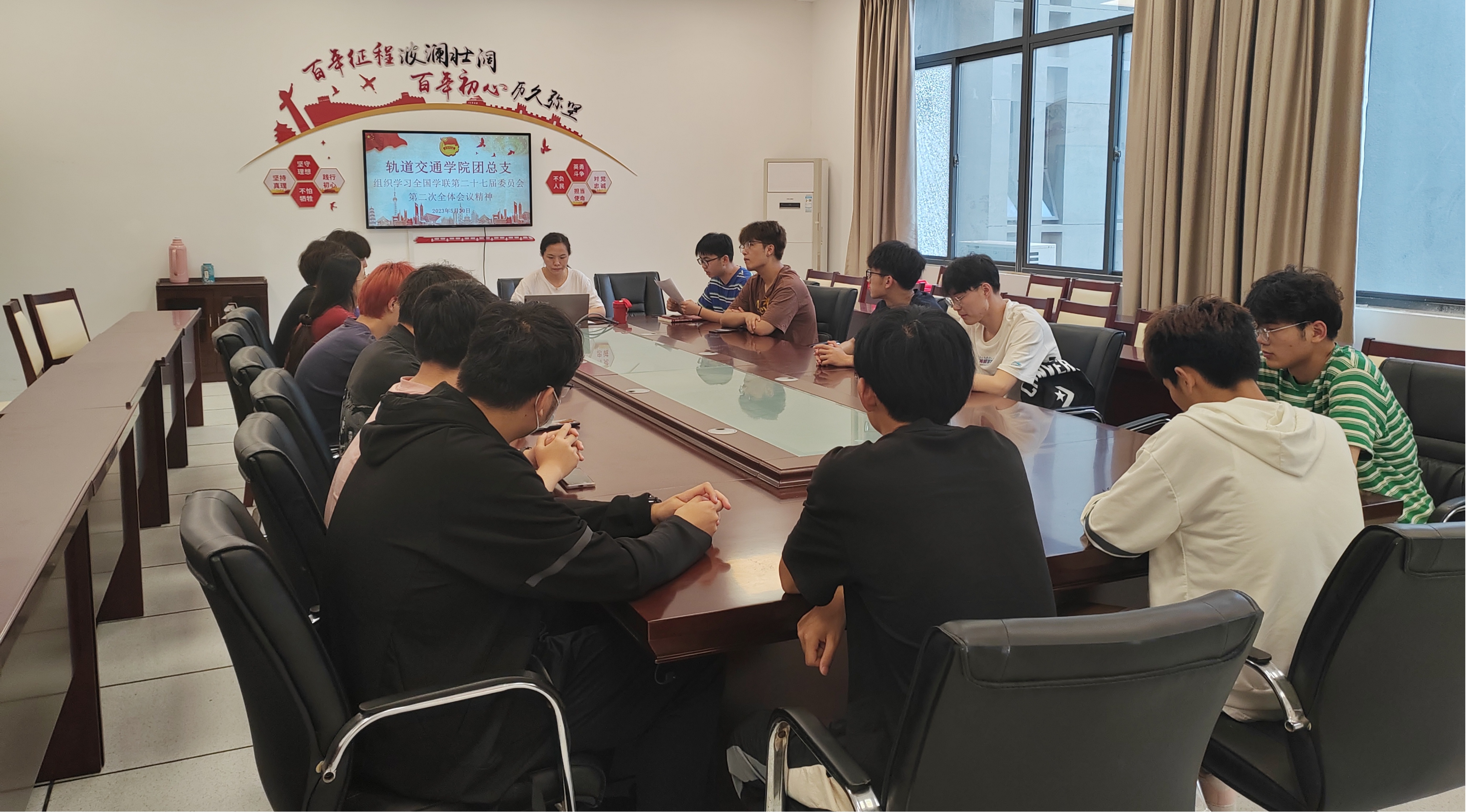 为深入学习宣传贯彻党的二十大精神,学习宣传全国学联第二十七届委员会第二次全体会议精神,明确从严治团、维护团学组织学生会清新阳光组织形象的建设要求,5月30日下午,永利集团304am登录于轨道楼207开展全国学联第二十七届委员会第二次全体会议精神专题学习会,永利集团304am登录团总支书记吴明丽主持会议。
